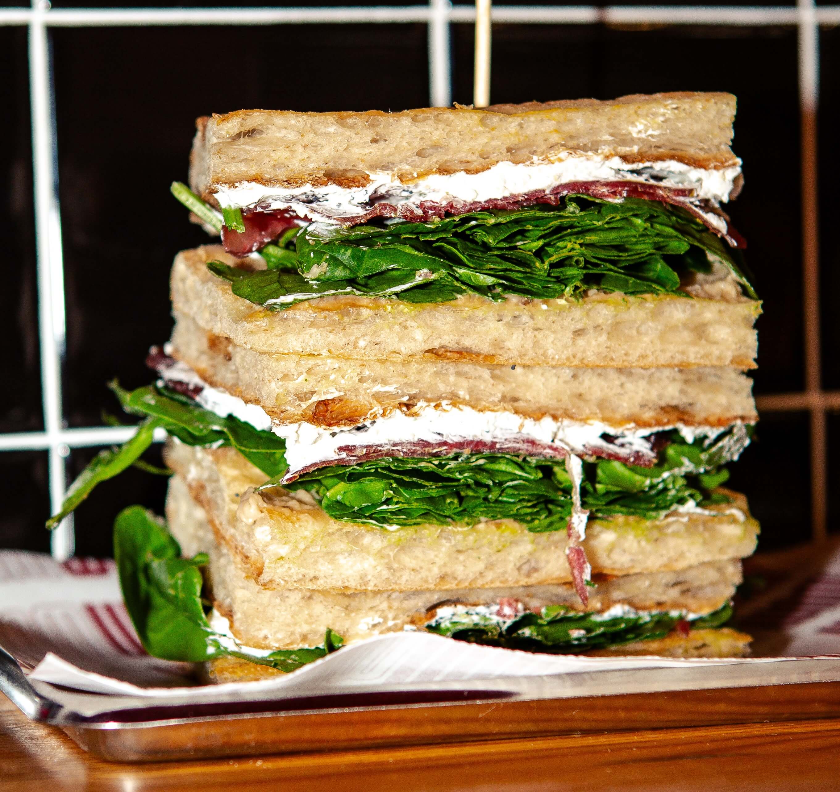 WAM bread, bresaola, truffle cream, parmesan cream, spinach and poppy seeds